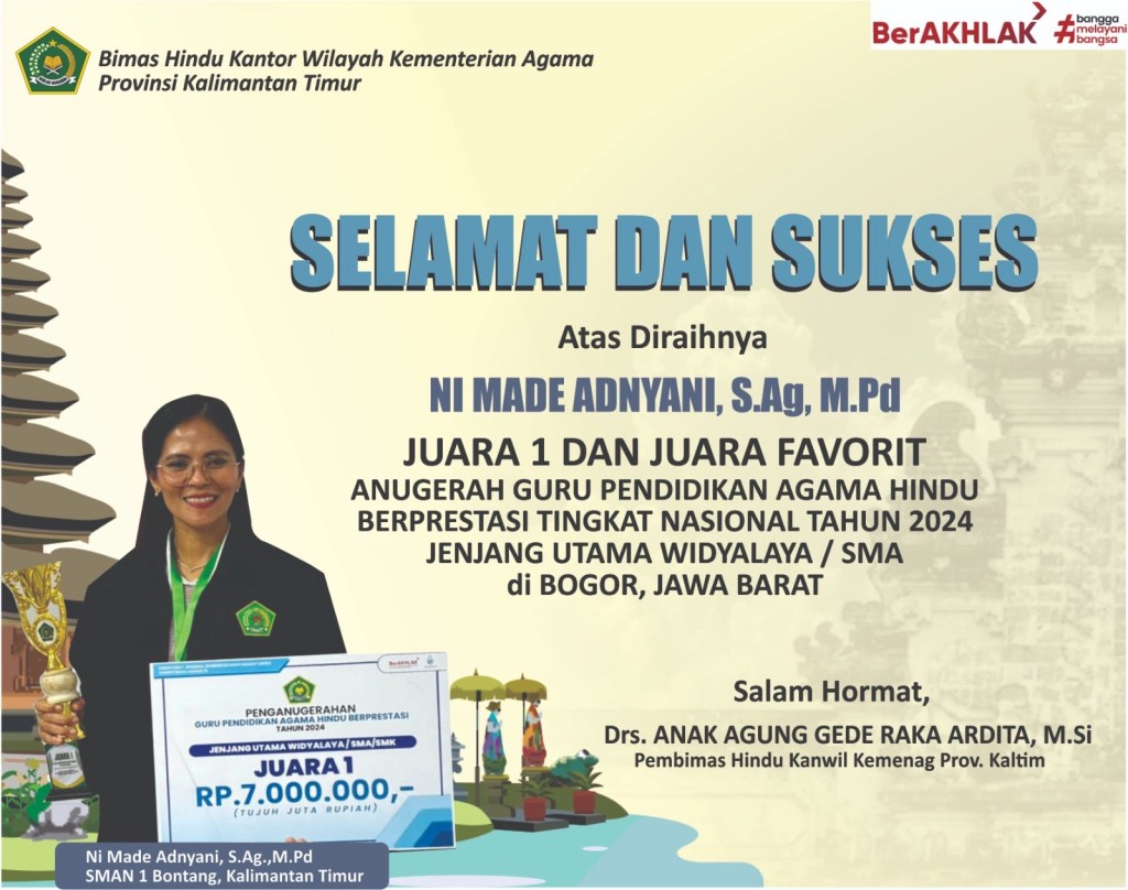 Pada tanggal 14-16 Oktober 2024, Direktorat Jenderal Bimbingan Masyarakat Hindu, Kementerian Agama Republik Indonesia, menyelenggarakan ajang Anugerah Guru Pendidikan Agama Hindu Berprestasi di LORIN Sentul Hotel, Bogor, Jawa Barat. Kegiatan ini bertujuan memberikan apresiasi, penghargaan, dan motivasi kepada para Guru Pendidikan Agama Hindu yang berprestasi, mulai dari jenjang Pratama Widyalaya (TK) hingga Utama Widyalaya (SMA).